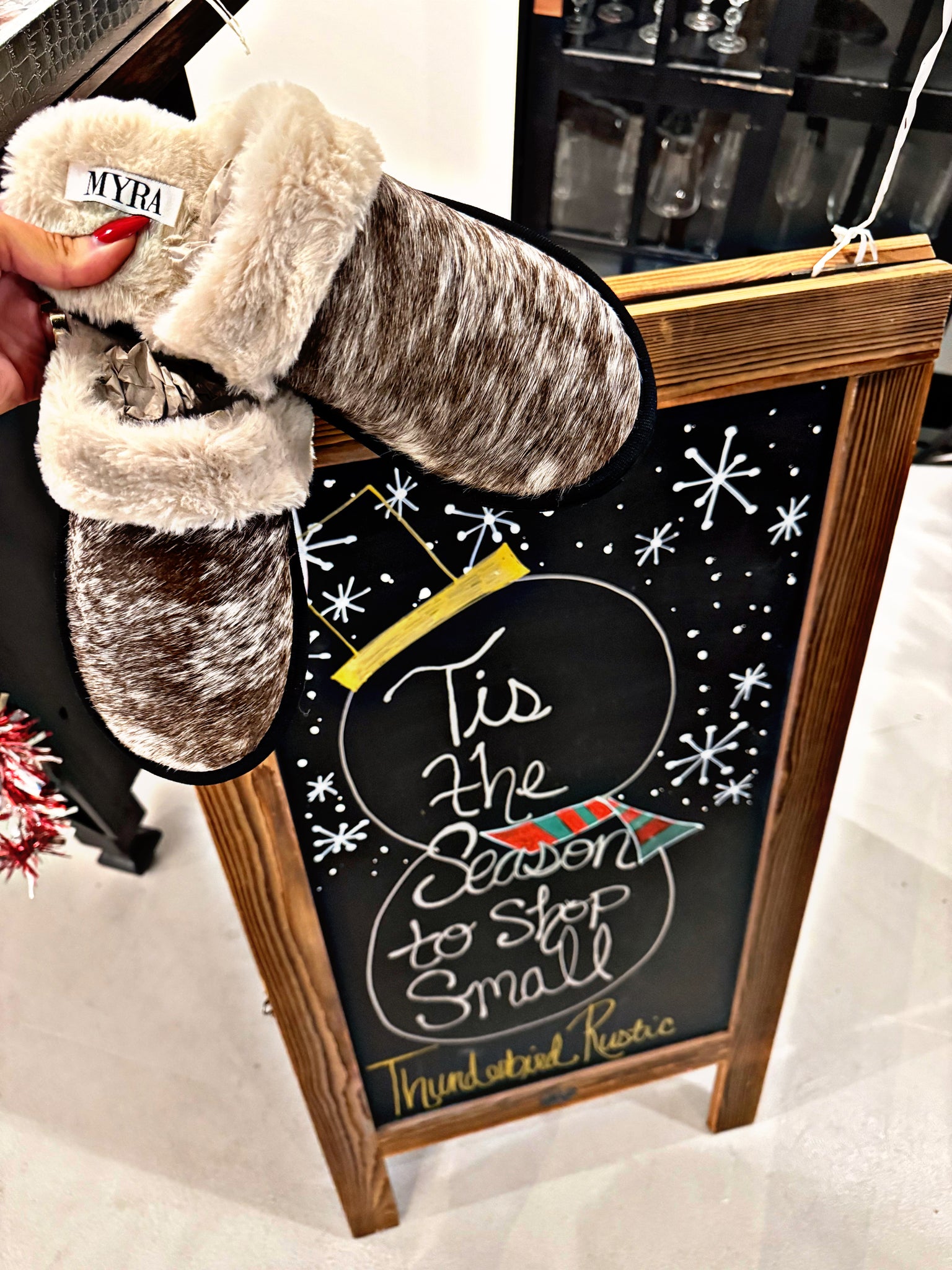 These luxe fur lined slippers are the perfect mix of cozy and cowgirl chic. Featuring a soft, cowhide-exterior and plush sherpa interior, they keep your feet warm, stylish, and comfy all season long. Lightweight, easy to slip on, and perfect for holiday mornings, busy mom days, or relaxing after a long shift.