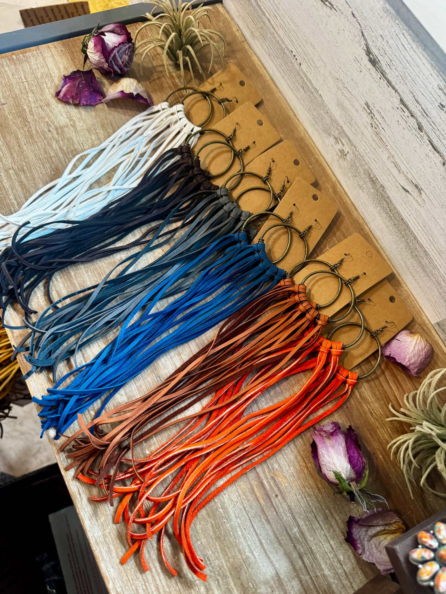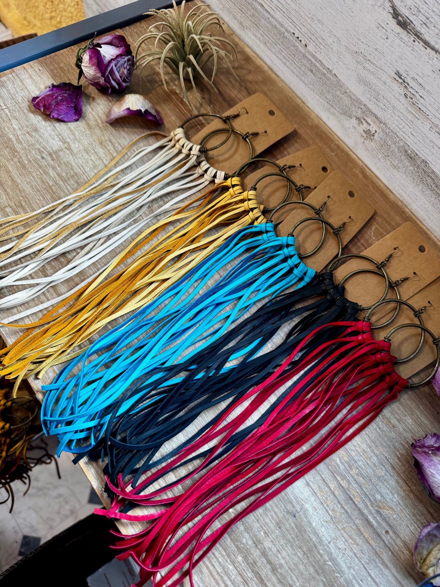 11" long leather hoop earrings